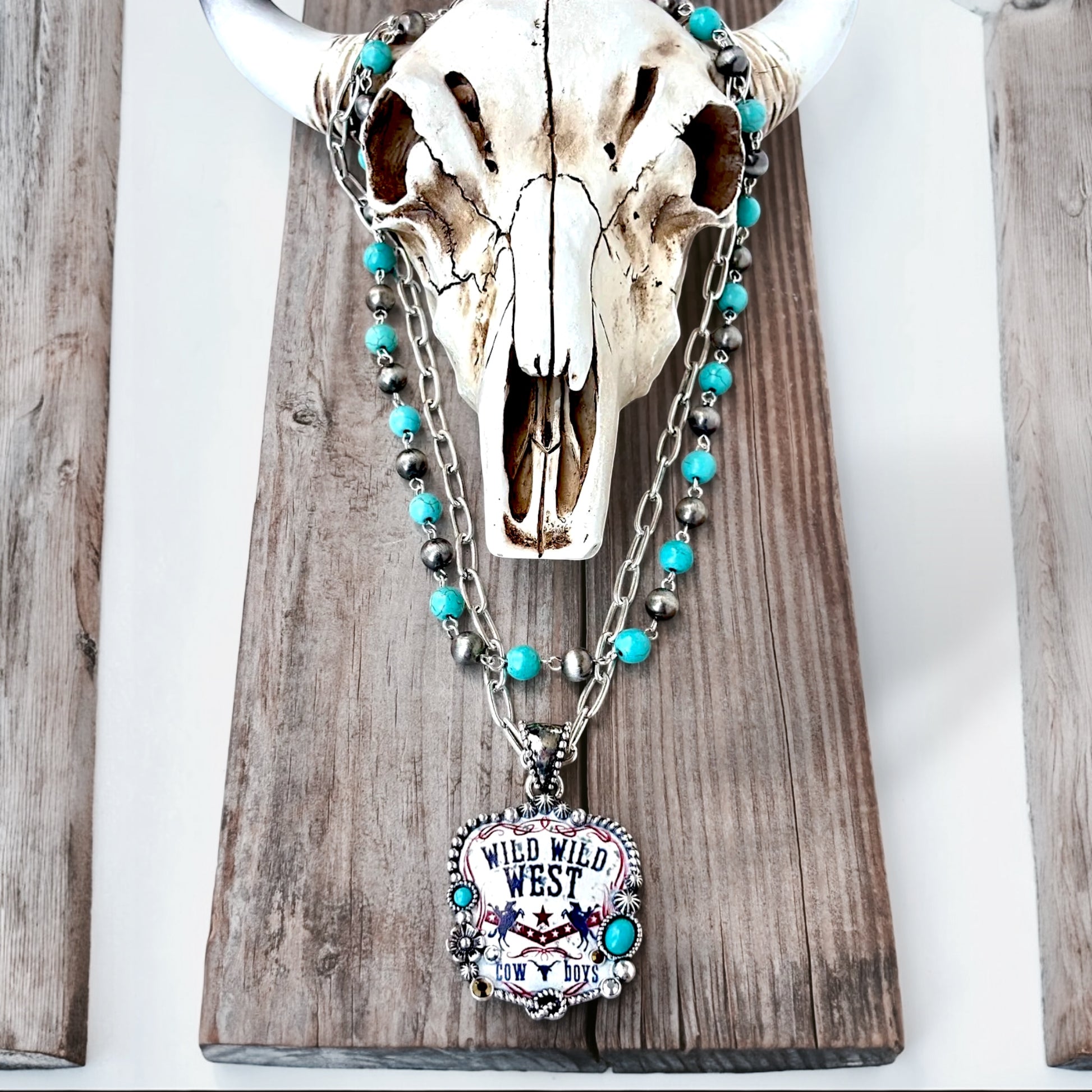Turquoise Stone Beaded Wild West Pendant Necklace